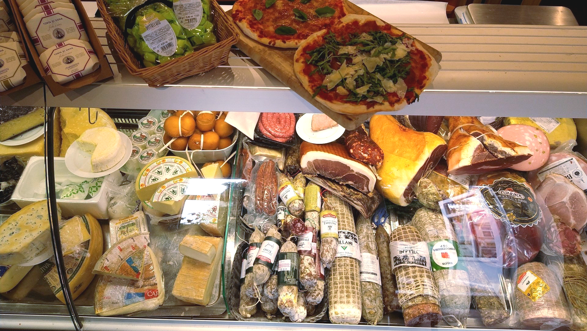 In the shop you may find italian salami, ham, cheese and anything, that rejoices the italian lover's heart. As a take away or a little gift for friend's or your loved ones at home, there is something to be found for everyone.